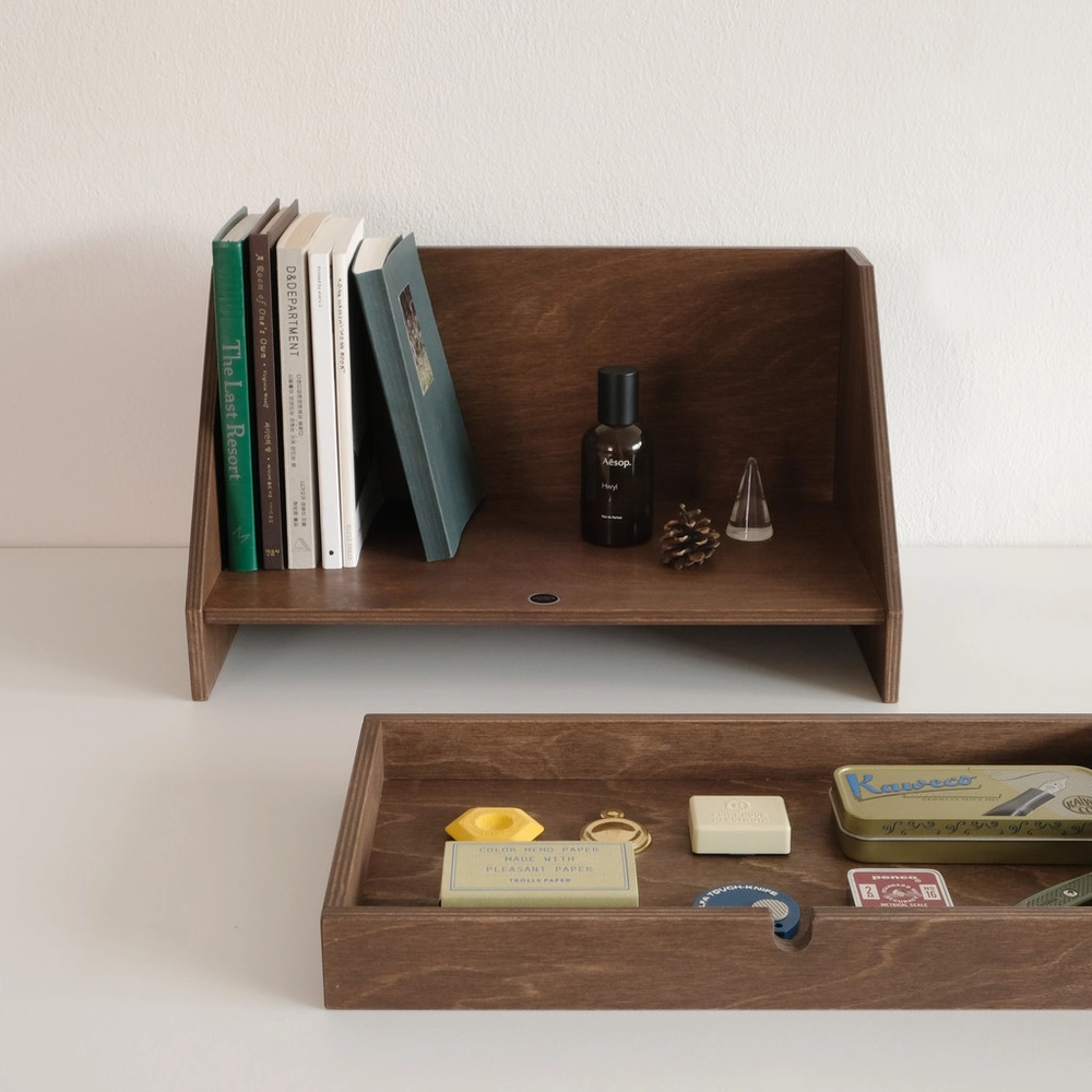 심플하고 직관적인 디자인의 '데스크 라이브러리 & 트레이'는 서재나 사무실, 거실, 주방, 화장대 등 어느 공간에서든 특유의 클래식한 분위기를 만들어냅니다.