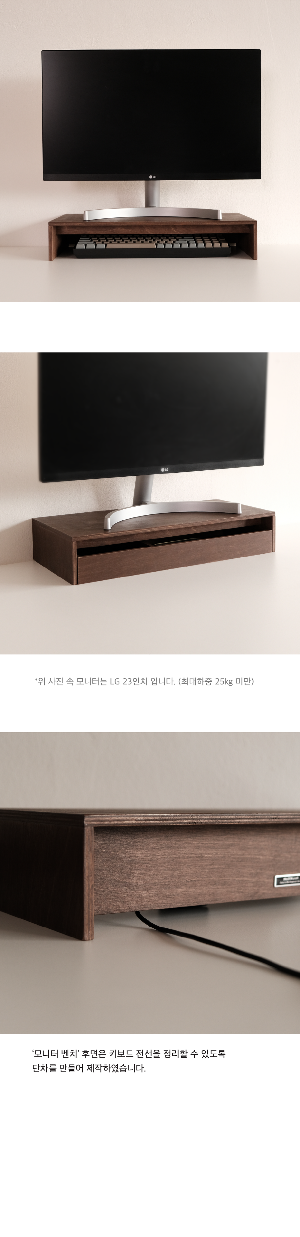 모니터를 올려두는 기능에 충실하도록 견고한 구조로 제작하여 오랫동안 안정감있게 사용하실 수 있습니다.