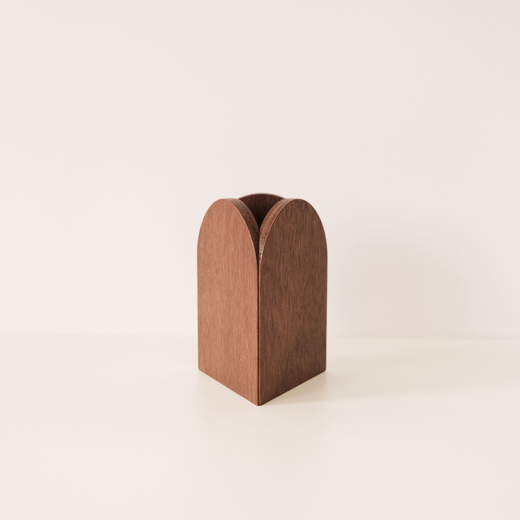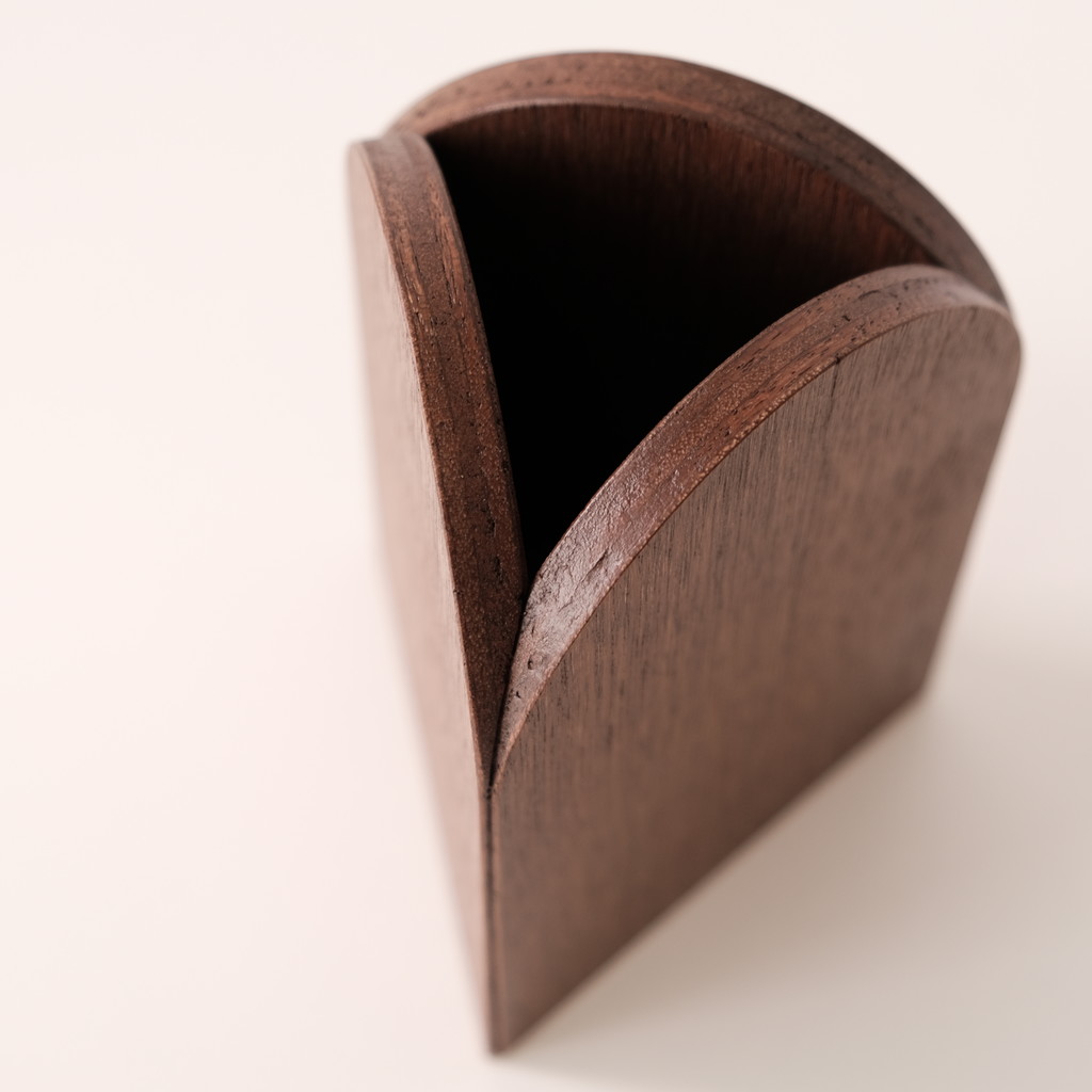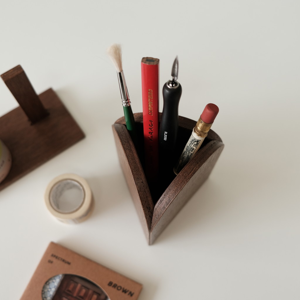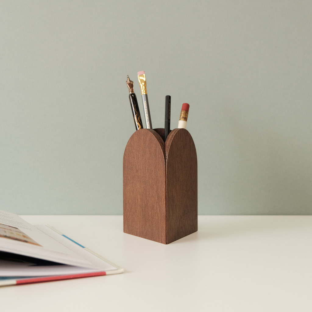 삼각 기둥 형태의 과감한 디자인과 아치형의 3면이 매끄럽게 이어지는 아름다운 형태가 돋보이는 특별한 연필꽂이 입니다.